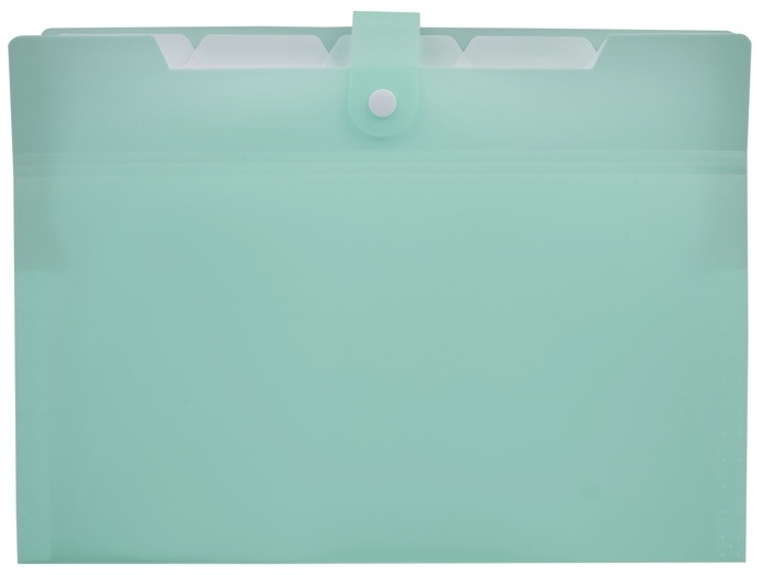 Teczka harmonijkowa A4 PP z przegródkami pastel zielony kod: THP-A4-14 - teczka harmonijkowa wykonana ze sztywnego tworzywa PP w kolorze pastelowym - wyposażona w 6 przegródek oddzielonych registrami dla łatwiejszej organizacji dokumentów - zamykana na wygodny nap zabezpieczający dokumenty przed...