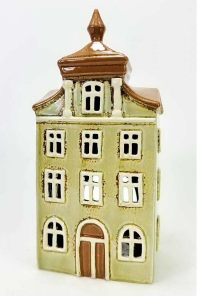 Ceramiczny domek na świeczkę typu tealight. Przytłumione światło świeczki prześwieca przez okienka i tworzy przytulną atmosferę. Świeczniki można dowolnie łączyć i stworzyć własne miasteczko.