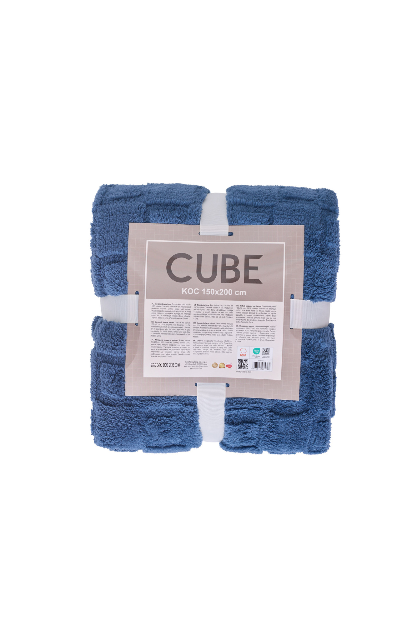 KOC CUBE 150X200 ŻAKARD SHERPA NIEBIESKI