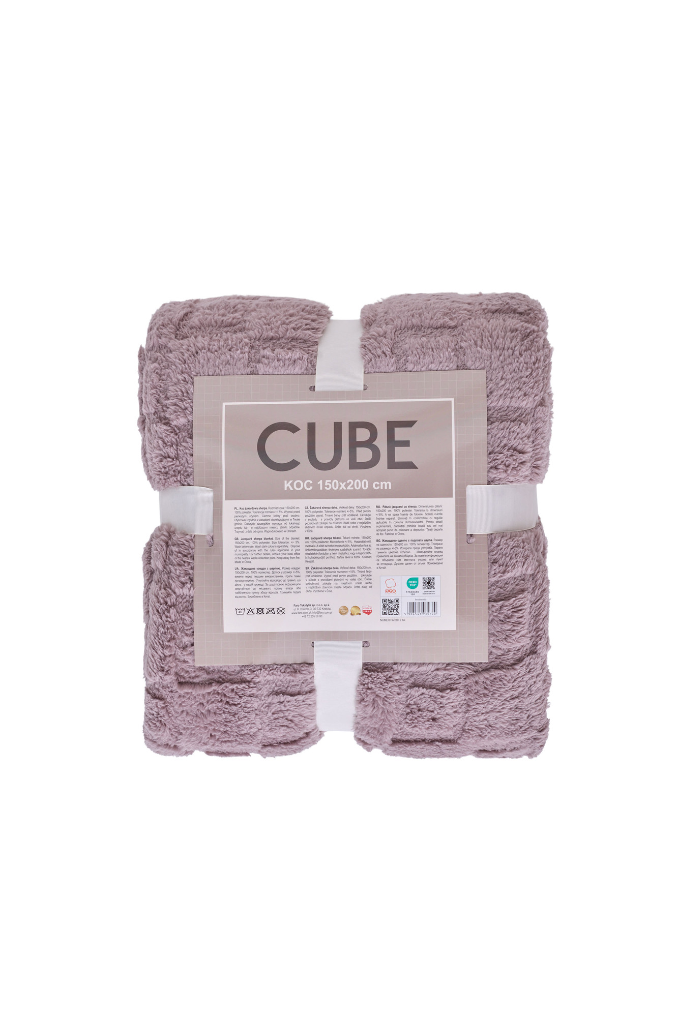 KOC CUBE 150X200 ŻAKARD SHERPA BRUDNY RÓŻ