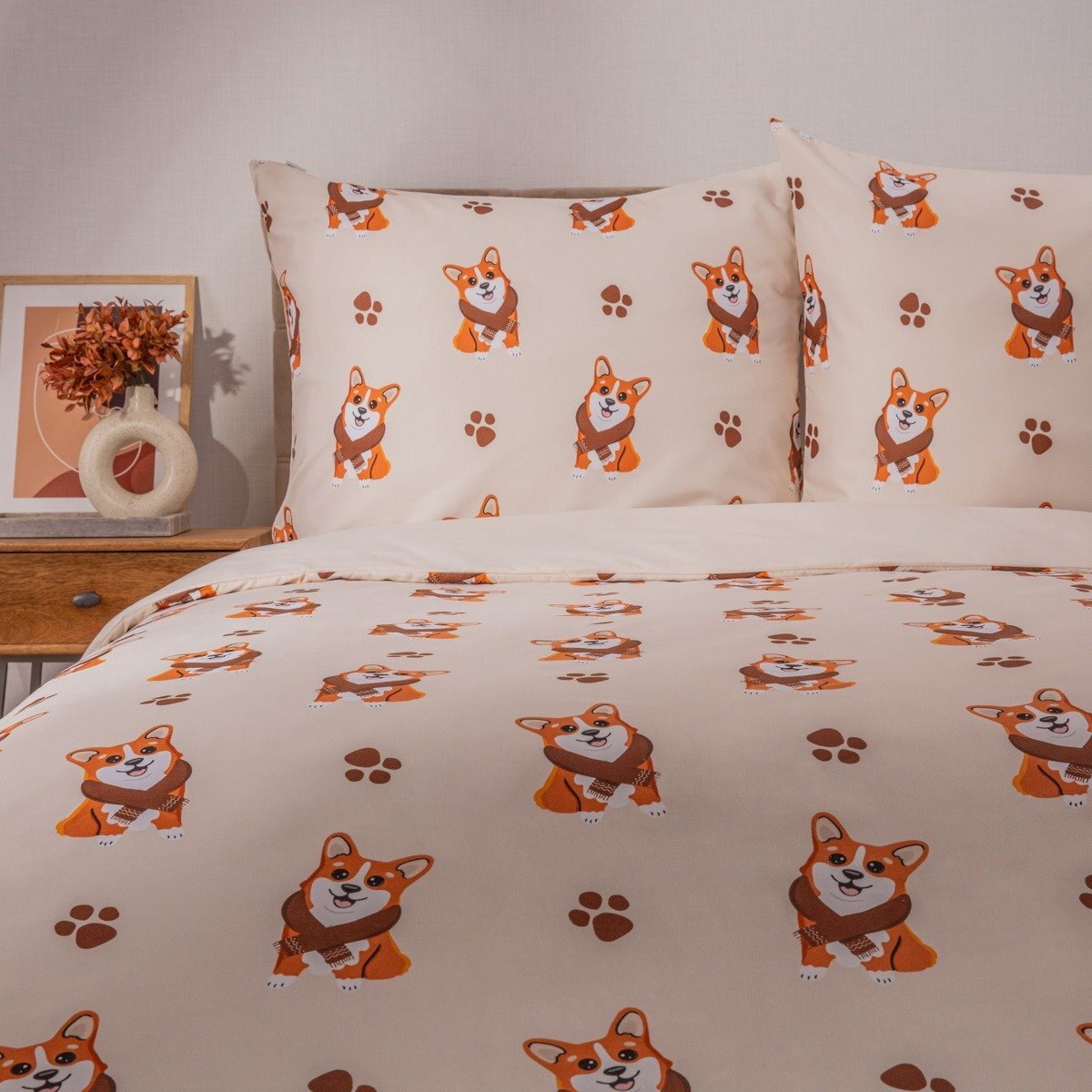 Ložní povlečení CORGI | mikrovlákno se vzorem psa | 140 x 200 + 1 x 70 x 80 cm | 756054