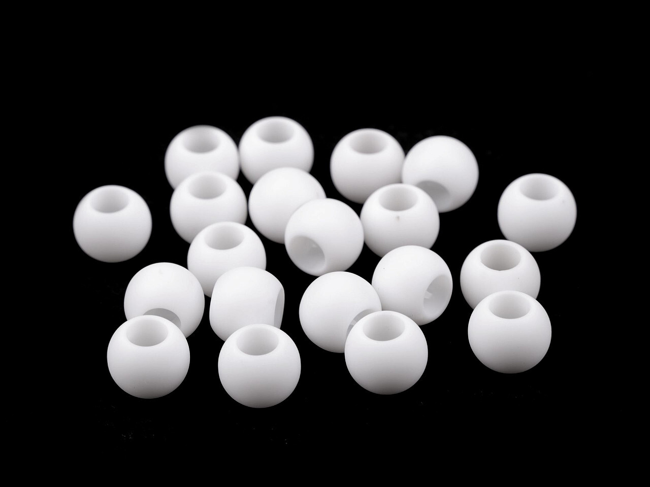 Plastové korálky matné s velkým průvlekem 11x14 mm - 200 ks - 1 (01) bílá