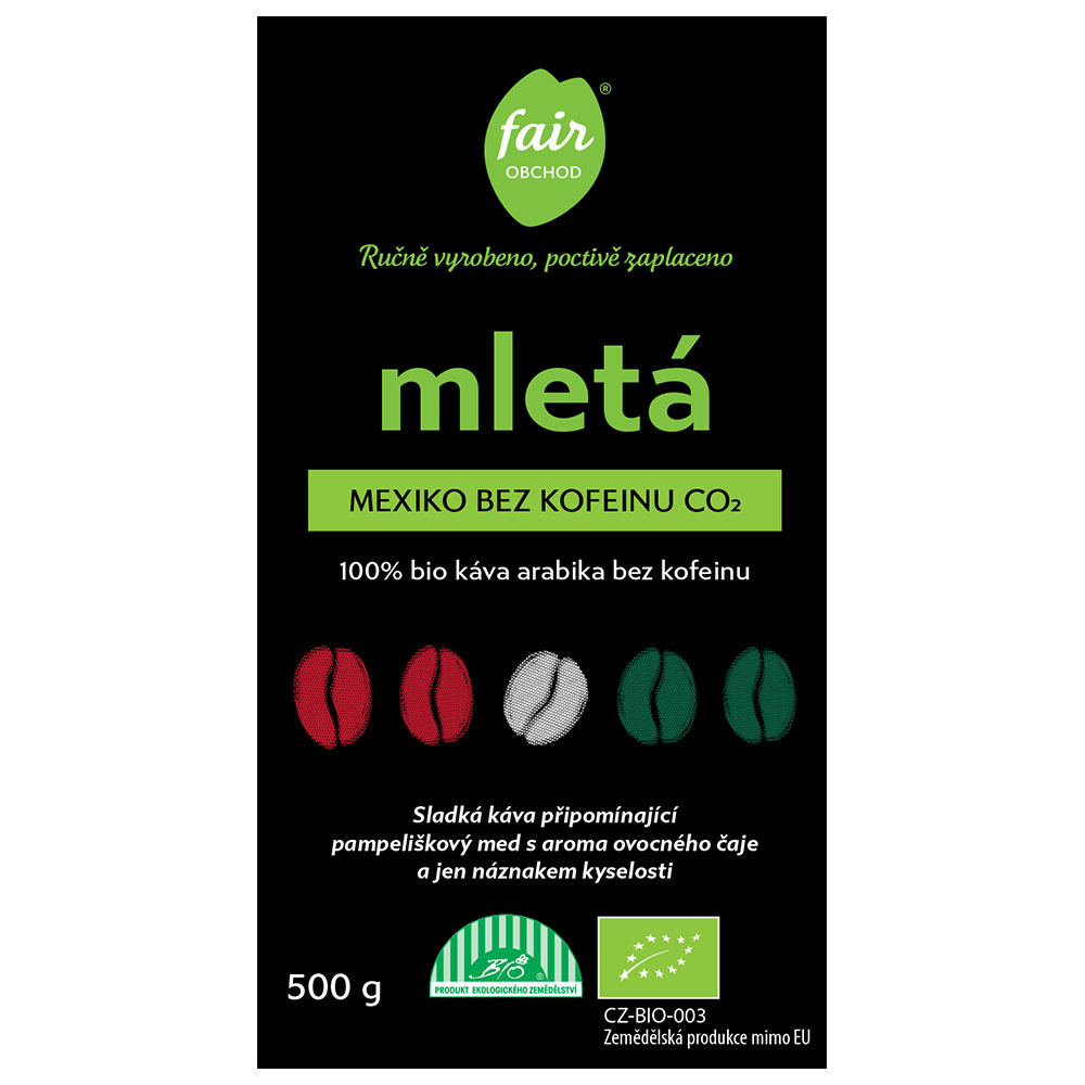 Fairobchod Bio mletá káva Mexiko bez kofeinu CO2, 500 g