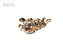 Na zadní straně je brožový špendlík s pojistkou proti otevření. Brož je na plastové kartě, kterou lze zavěsit na prodejní stojany.