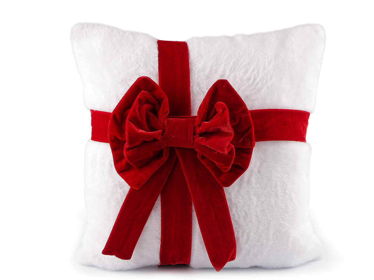 Vánoční plyšový povlak na polštář s mašlí 40x40 cm - 1 ks - bílá červená