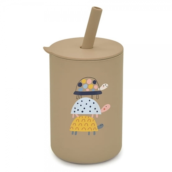 Silikonový hrnek s brčkem Želva, 150 ml - tm. béžový