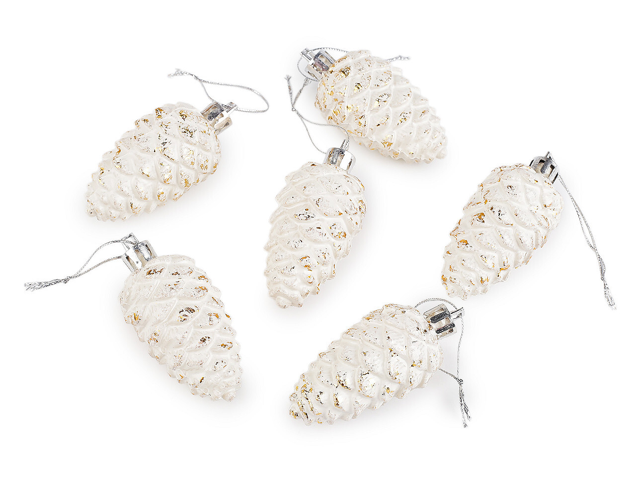 Vánoční šišky k zavěšení 6 cm - 6 ks - bílá přírodní