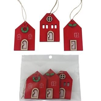 Dekorační domeček k zavěšení, 3 ks D7571-08