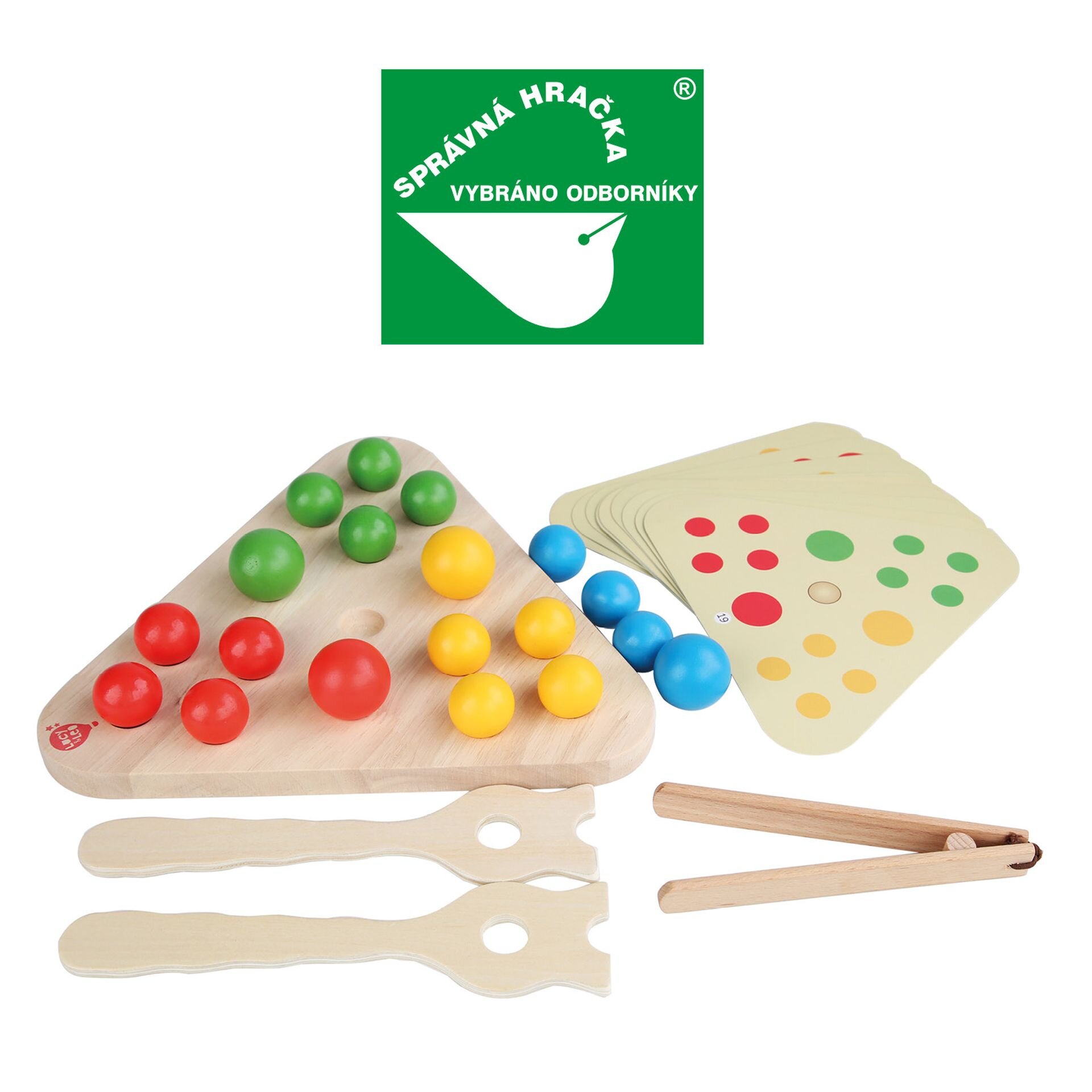 Magický trojúhelník 2v1 je dřevěná oboustranná hra, která pomáhá dětem rozvíjet logické myšlení, jemnou motoriku a procvičuje paměť. Můžete si vybrat ze dvou variant. 1. varianta: Třídič – pomocí pinzety a lžíce uspořádejte kuličky různých velikostí dle 20 přiložených předloh. 2. varianta:...