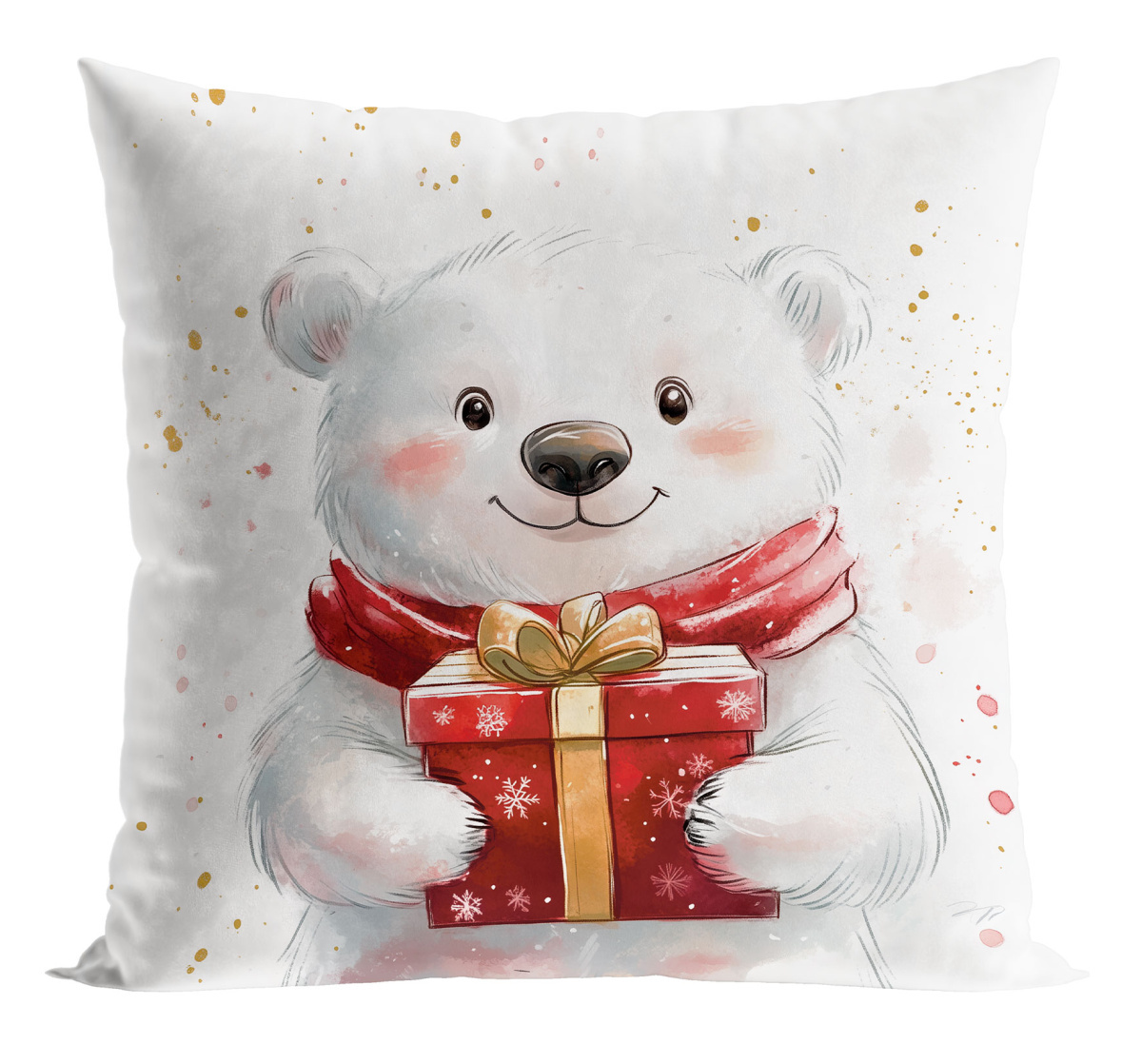 Vánoční polštář MEDVÍDEK S DÁRKEM 40x40 cm Mybesthome