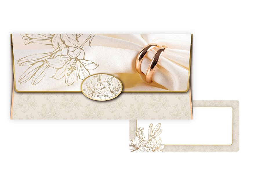 Obálka na peníze – svatební prstýnky a květinový dekorElegantní svatební obálka na peníze v jemných krémových tónech zdobená zlatou květinovou grafikou a prstýnky je krásným doplňkem každého svatebního daru. Působí decentně a slavnostně, takže dokonale podtrhne význam tohoto výjimečného...