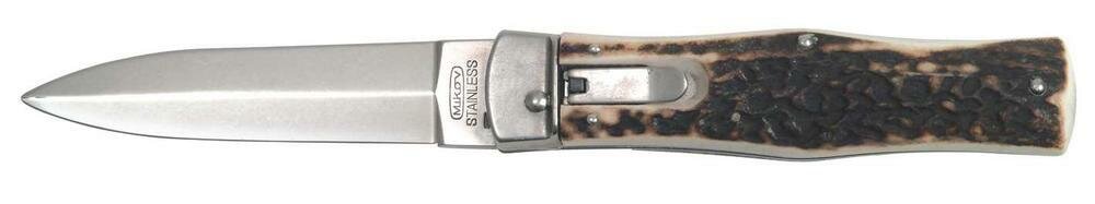 Vyskakovací automatický nôž Mikov Predator 241-NP-1/KP bol vyrobený v Českej republike (Mikulášovice). Možno ho využiť napr. pri kempingu, krájaní potravín a všeobecne využiť v prírode.Má čepeľ s hladkou hranou z nehrdzavejúcej ocele 420. Dá sa otvárať jednou rukou, má zaisťovaciu poistku....