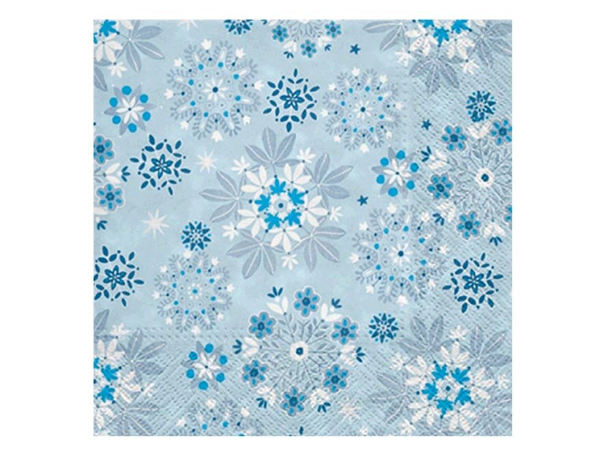 Vánoční ubrousek s modrými sněhovými vločkamiUbrousek s jemným modrým podkladem a motivem sněhových vloček navodí tu pravou zimní atmosféru. Kombinace bílé, modré a tyrkysové barvy působí svěže a elegantně, takže se skvěle hodí k vánočnímu stolování i zimním dekoracím.Ubrousek je třívrstvý a...