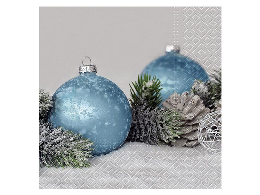 Vánoční ubrousek s modrými ozdobamiModerní a přitom nadčasový doplněk pro sváteční stolování, právě takový je tento vánoční ubrousek. Modré vánoční koule v kombinaci se zasněženými větvičkami a šiškami vytvářejí klidnou zimní atmosféru a dokonale ladí s bílým i stříbrným prostíráním.Tento...