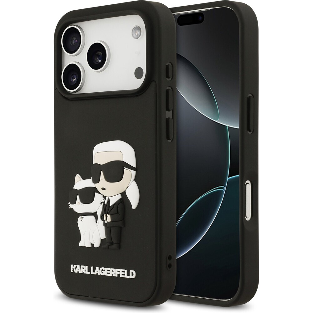 Karl Lagerfeld 3D Rubber Karl and Choupette kryt iPhone 17 Pro černý