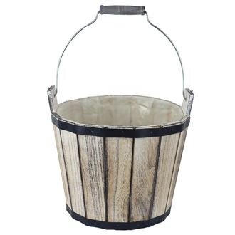Dřevěný k belík s plastem, kovovým ouškem k osázení. przeczytaj całość