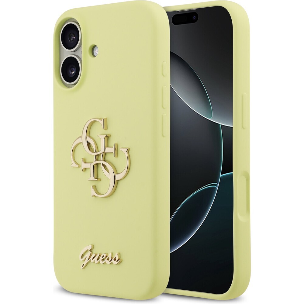 Guess Liquid Silicone 4G Metal Logo kryt iPhone 17 žlutý