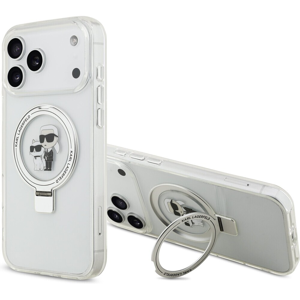 Karl Lagerfeld Ringstand Karl and Choupette MagSafe kryt iPhone 17 Pro Max bílý