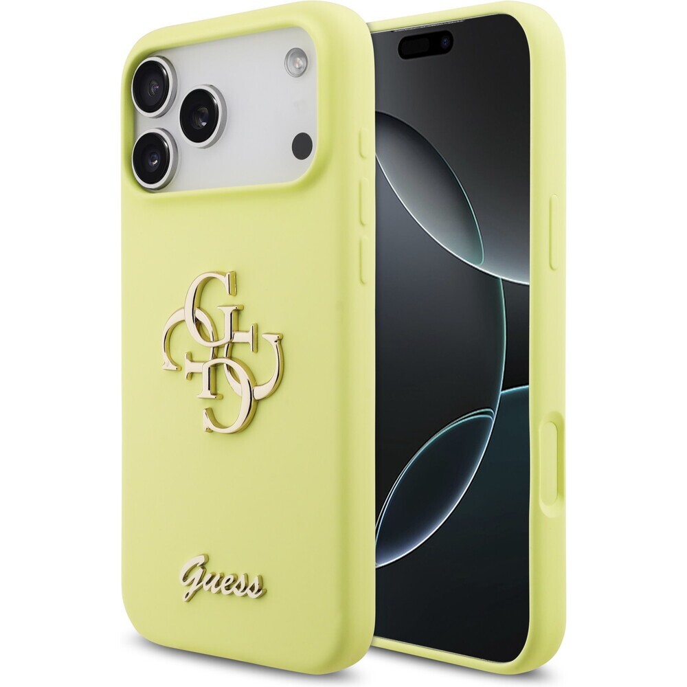 Guess Liquid Silicone 4G Metal Logo kryt iPhone 17 Pro Max žlutý