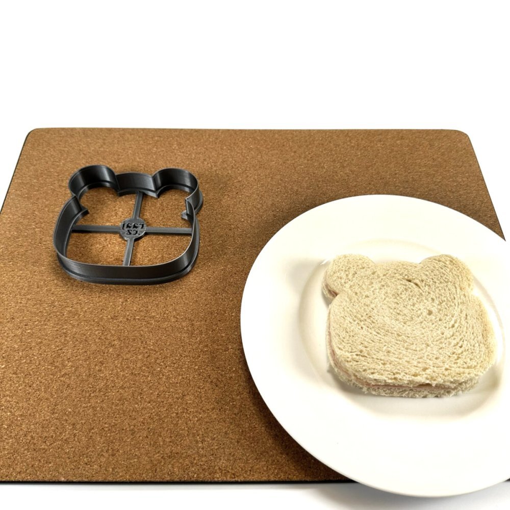 Originální vykrajovátko na tousty/sandwiche zhotovujeme pomocí 3D tisku na 3D tiskárně zpracováním plastového PLA materiálu, který je biologicky odbouratelný, odolný do 50°C a nevhodný do myčky na nádobí. Před prvním použitím a vždy po použití vykrajovátko omyjte jarovou vodou a důkladně osušte. Není určeno pro děti do 3 let, hrozí odlomení malých částí.