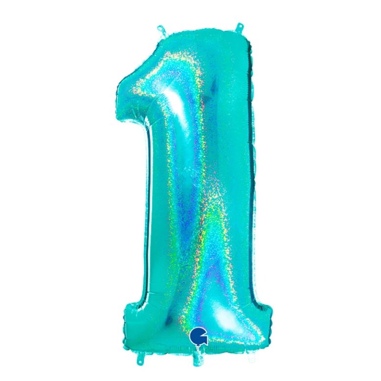 Nafukovací balónek číslo 1 tyrkys holografický 102 cm - Grabo