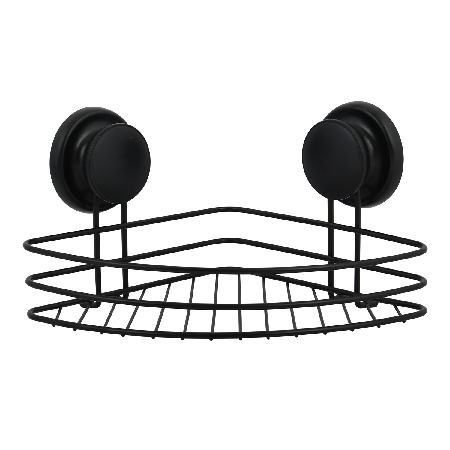 MSV rohová polička s přísavkami MEGA VENTOUSES, do koupelny, černá, ocel, 21,5 cm