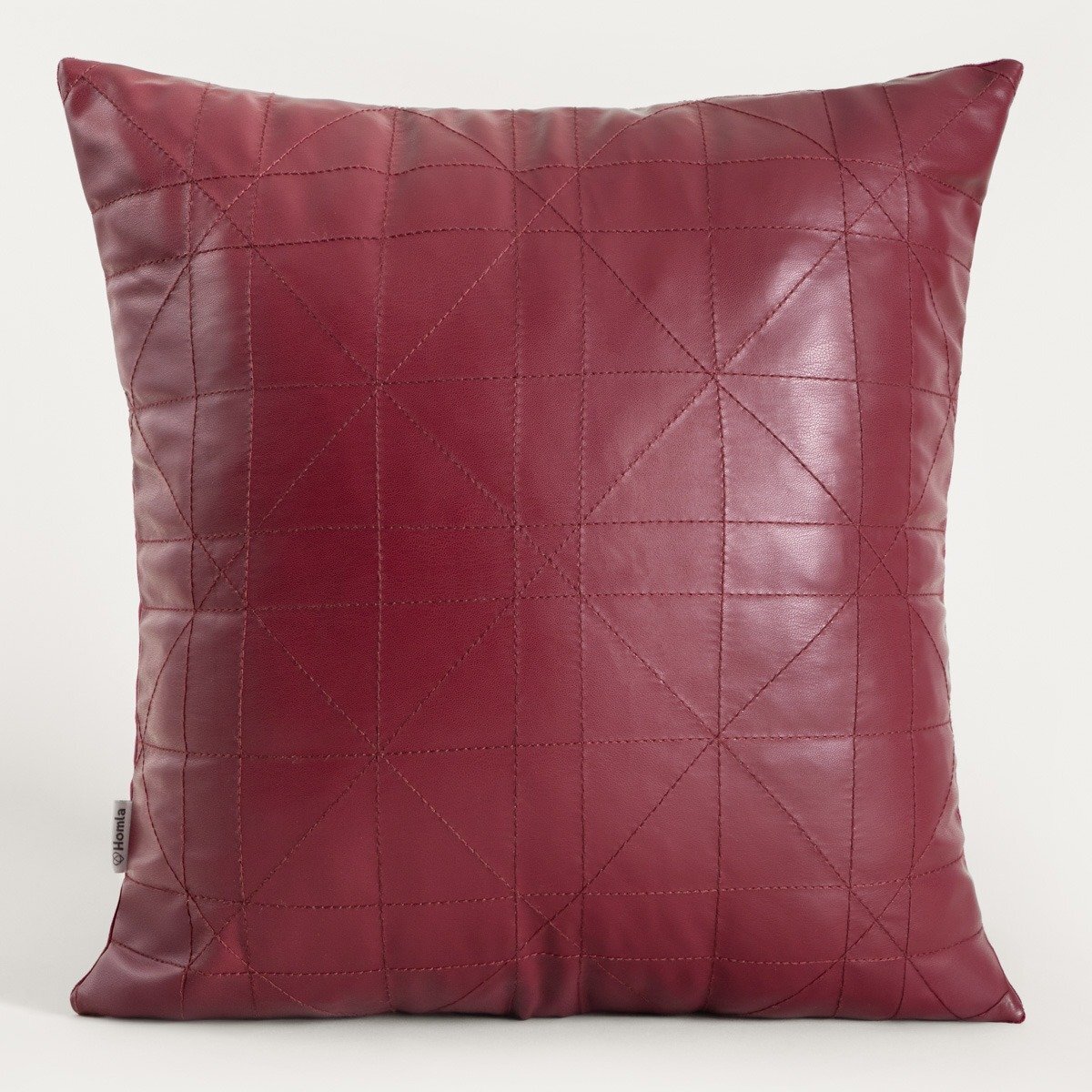 Poszewka | GAVA | z ekoskóry z ozdobnymi przeszyciami burgundowa | 45x45cm | 749476