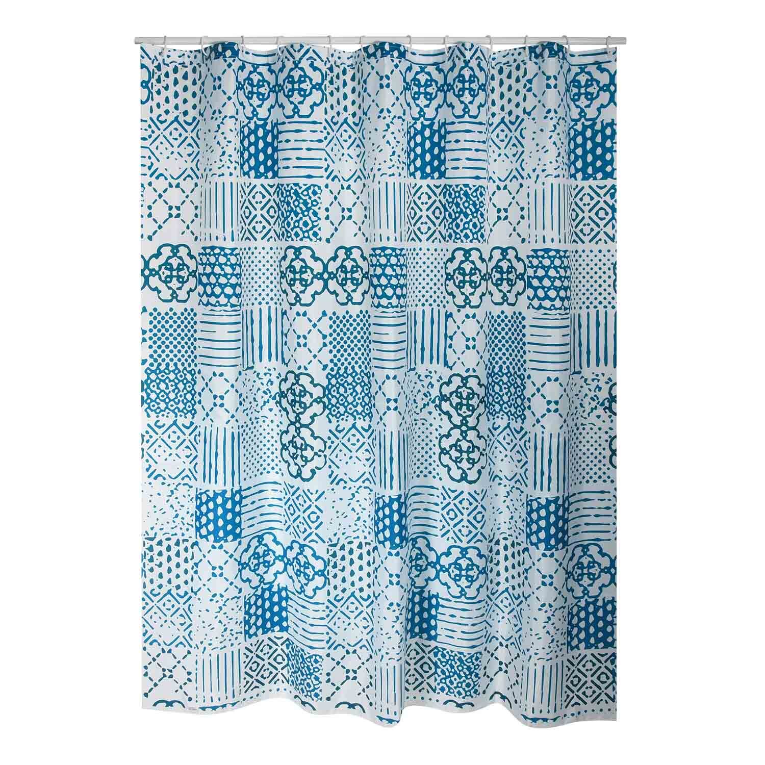 MSV sprchový závěs ALENTEJO, vzorovaný, modrý, 180 x 200 cm, polyester, s kroužky