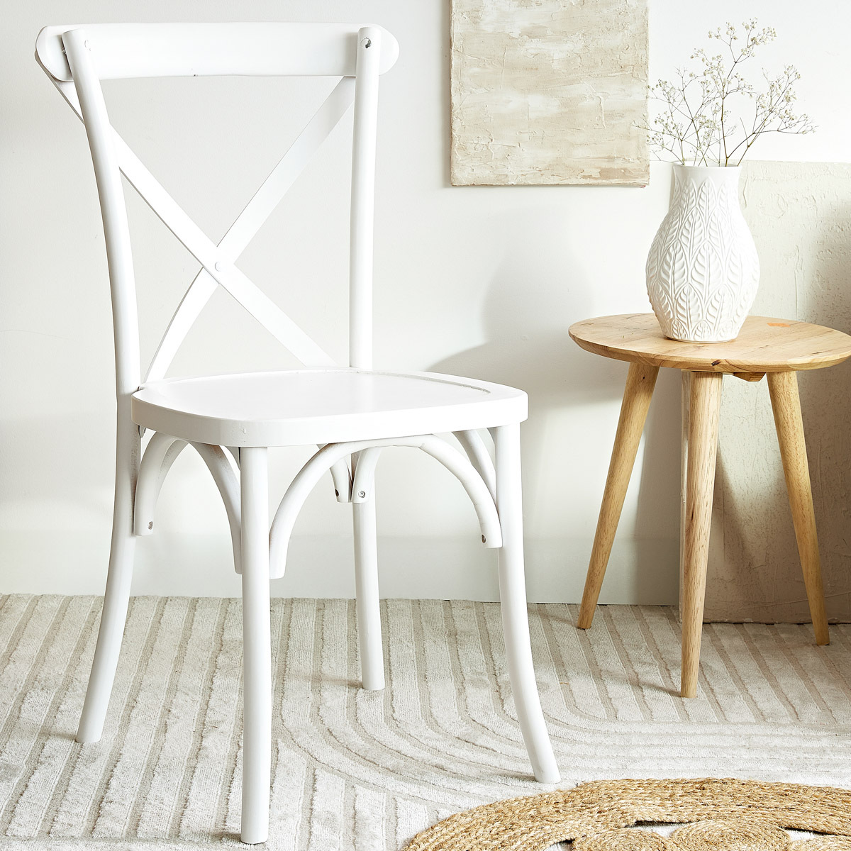 Krzesło DREV drewniane białe 43,5x44x89,5 cm przeczytaj całość