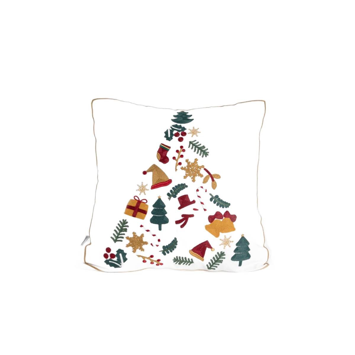 Świąteczna poszewka na poduszkę z haftowanymi detalamiMotyw choinki z bożonarodzeniowymi symbolamiZapięcie na zamekWymiary: 45 x 45 cmPoszewka na poduszkę świąteczna biała z haftowanymi ozdobamiPoszewka ANTRES przywołuje magię świąt dzięki bogatym, haftowanym detalom ułożonym w kształt choinki....