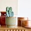 Stylowy designElegancka i trwała ceramikaWspaniale podkreśla zieleń kwiatówZabezpiecza przed wyciekaniem wodyCeramiczna osłonka na doniczkę zielona 13,8x12,8 cmOsłonka na doniczkę MAYA pozwoli Ci w pełni cieszyć się pięknem domowych kwiatów. Zielona powierzchnia i brązowe paski doskonale...
