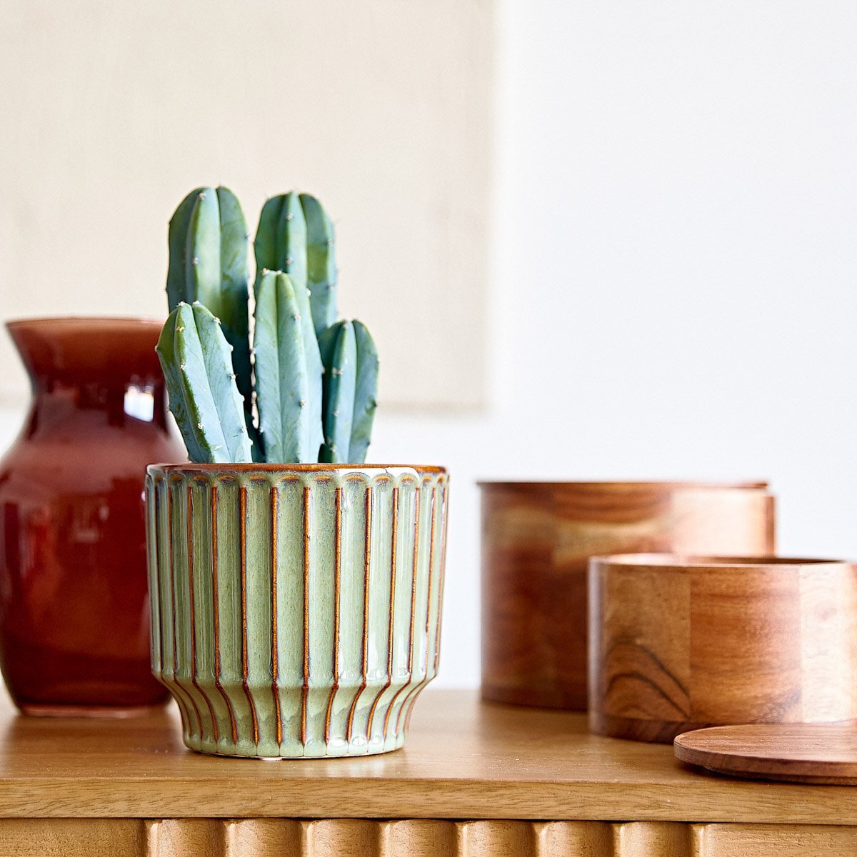Osłonka na doniczkę | MAYA | ceramiczna zielona | 13,8x13,8x12,8 cm | 885346