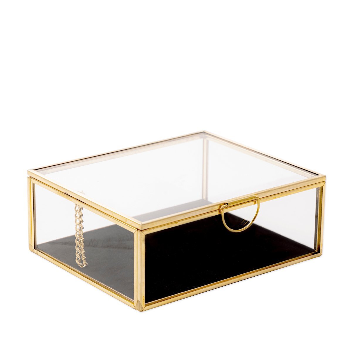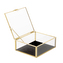 Pełen elegancji designPiękne połączenie szkła i złotego metaluWymiary podstawy: 13 x 11 cmWysokość: 5 cmSzkatułka na biżuterię szklana z welurową wyściółką Zachwycająca stylowym designem szkatułka na biżuterię HOMLA GRAZIA. Ścianki szkatułki zostały wykonane z przezroczystego szkła, które...
