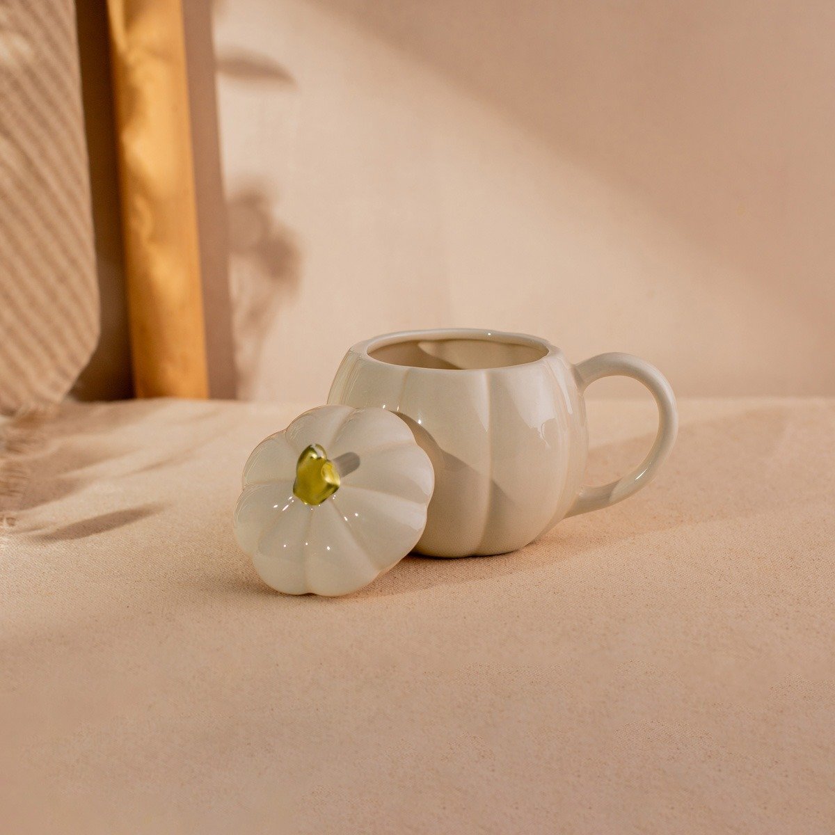 Kubek | PUMPKIE | w kształcie dyni z pokrywką kremowy SHINY | 0,6 l | 709876