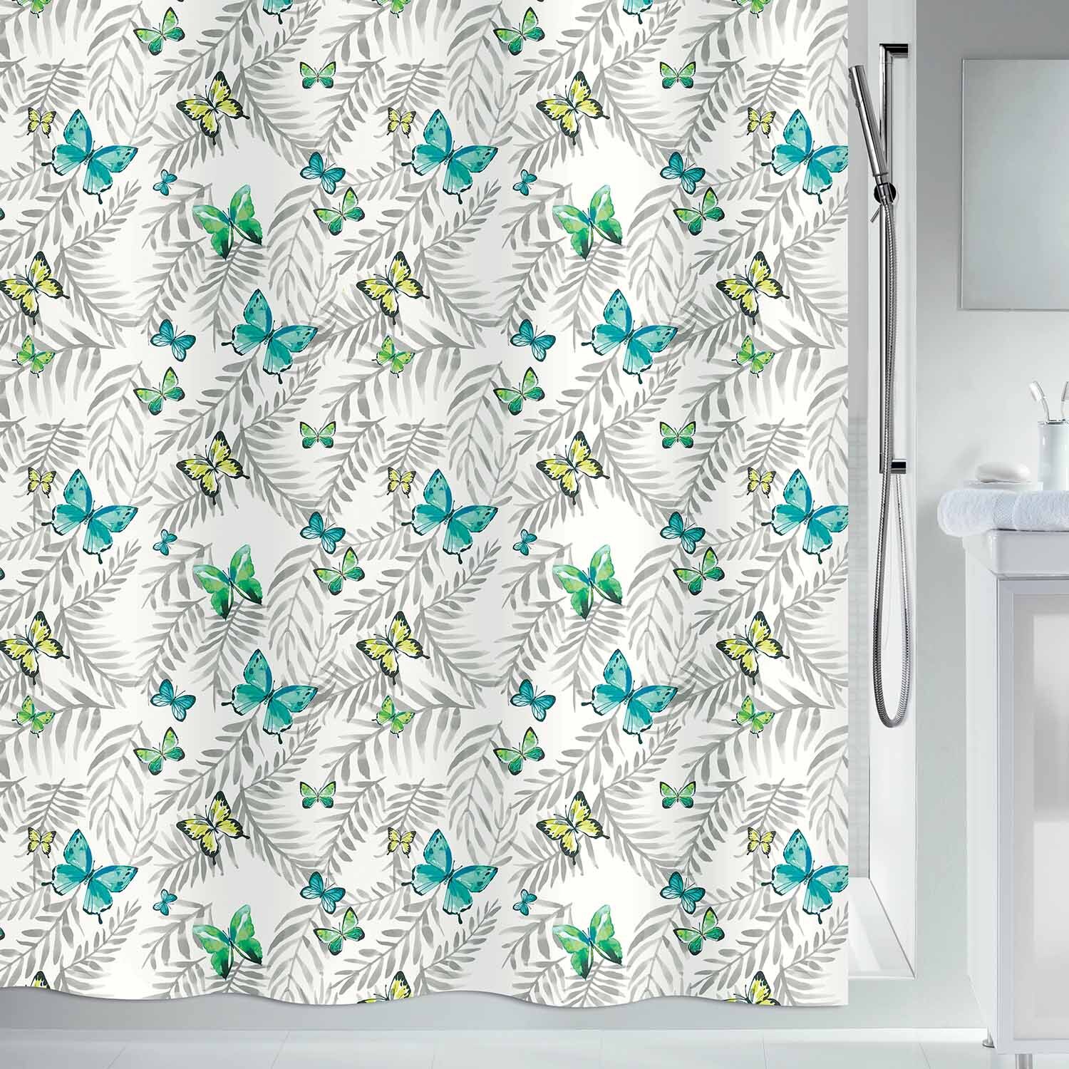 Spirella sprchový závěs PAPILLONS, motiv motýli, bílý, 180 x 200 cm, polyester