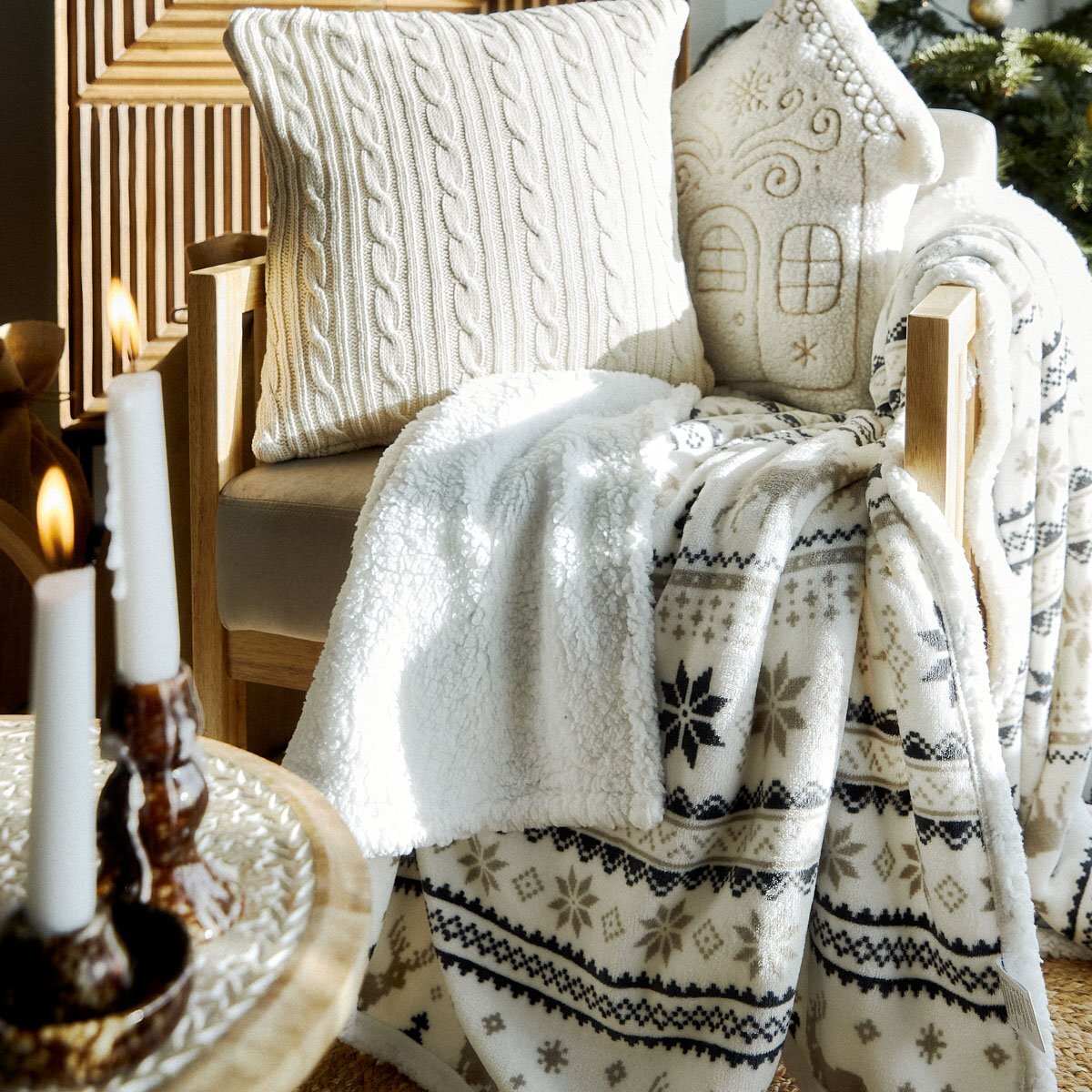 Koc | CRIMI | świąteczny beżowy z szerpą | 150x200 cm | 866130