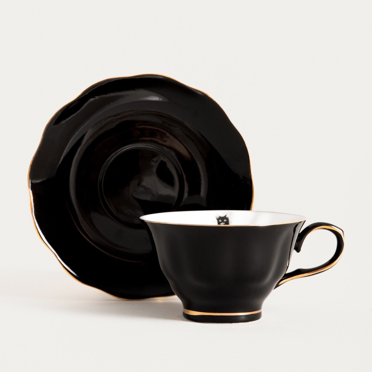 Filiżanka | BARIK | ze spodkiem czarna z kotem | 0,15 l | 750465