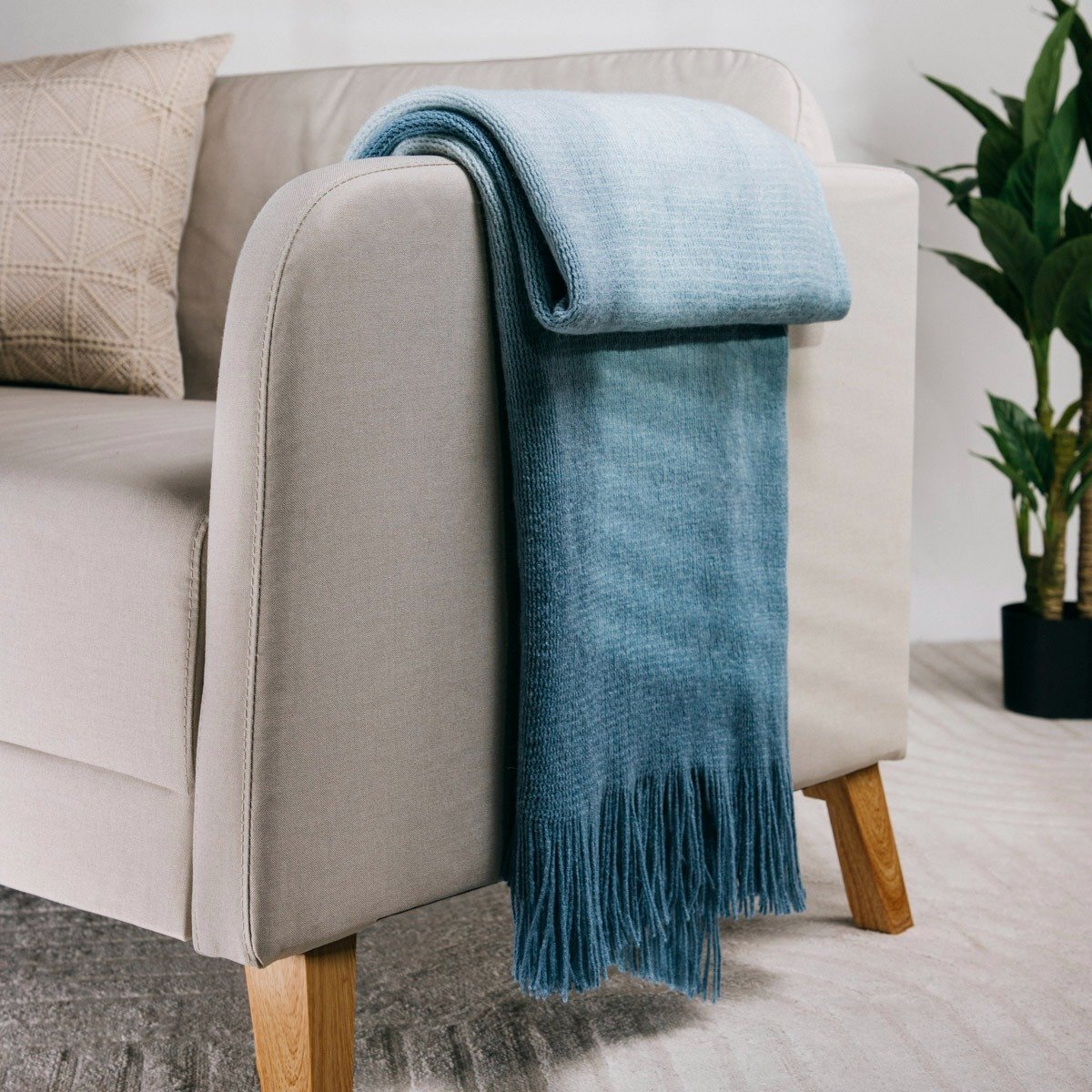 Koc | FINNS | ombre miękki błękitny z frędzlami | 130x170 | 745300
