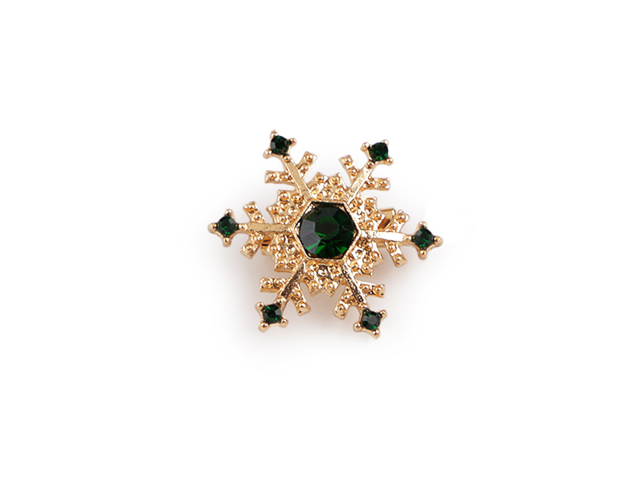 Brož s broušenými kamínky vločka - 1 ks - 4 zelená tmavá