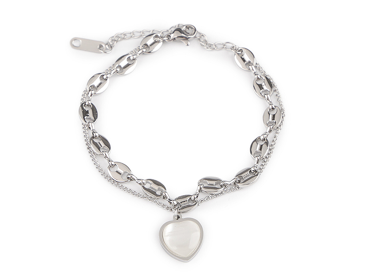 Náramek z nerezové oceli dvojitý, srdce - 1 ks - stříbrná