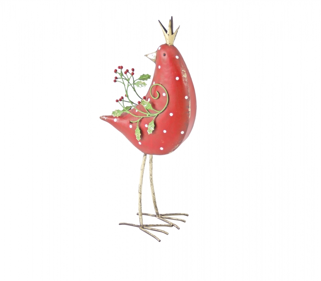 Kovový červený pták s korunkou 53 cm