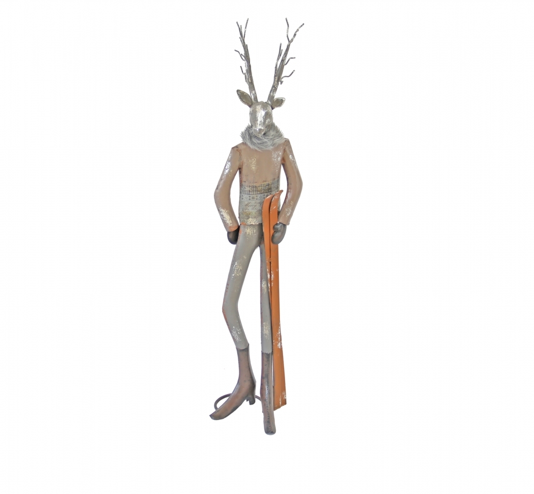 Kovový jelen s lyžemi 77,5 cmmateriál: kovbarva: šedá, bílá, béžová, oranžovározměry: