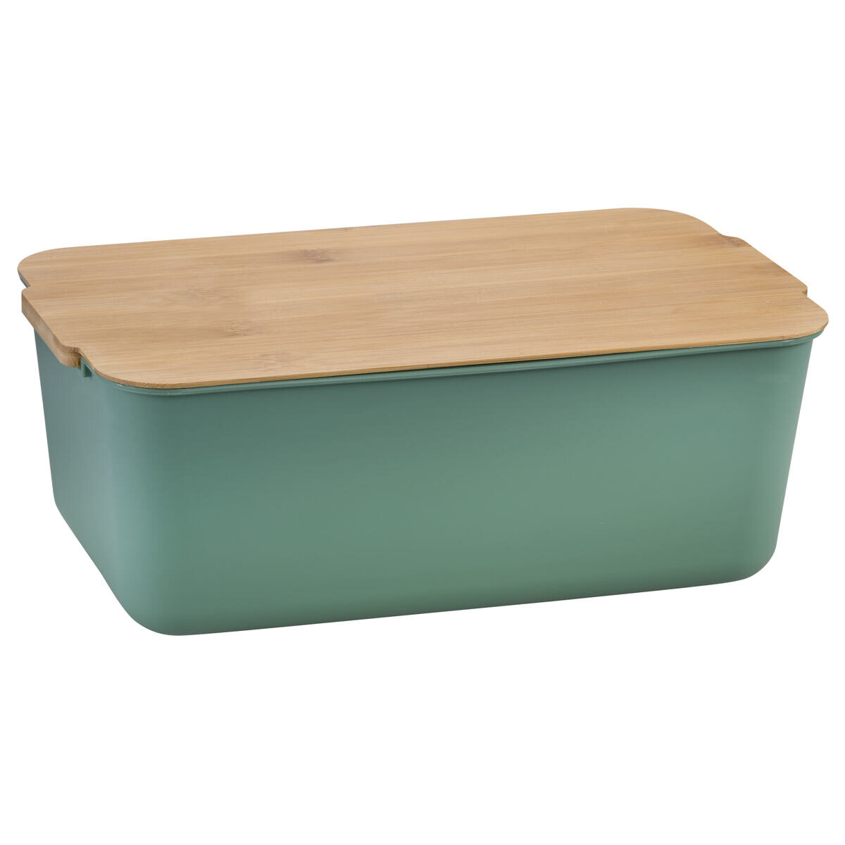 Chlebník s prkénkem, 31 x 18,5 x 12,5 cm, zelený KESPER Tento elegantní chlebník s prkénkem je praktickým pomocníkem do každé kuchyně. Je vyroben z odolného plastu (PP) a disponuje odnímatelným, oboustranným prkénkem z FSC®-certifikovaného bambusu. Slouží nejen jako úložný box na pečivo, ale také...