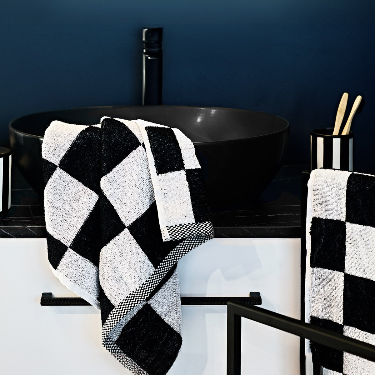 Uniwersalne biało-czarne barwy, łatwe do wkomponowania w każdą aranżacjęModny wzór w szerokie pasyWysokiej jakości, miękka i chłonna bawełnaSkutecznie osusza i jest doskonały do codziennej pielęgnacjiElegancki ręcznik w kratę 50 x 90 cmWprowadź do swojej łazienki wyjątkowy akcent w postaci...