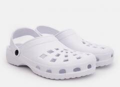 Clogi w kolorze białym. Clogi wykonano z bardzo miękkiego i lekkiego materiału, a zarazem trwałego. Są proste w czyszczeniu, a ich materiał nie wchłania wody, dzięki czemu szybko schną. Clogi wsuwane z dodatkowym ruchomym paskiem który zabezpiecza nogę przed wypadaniem.Długość wkładki: 25 cm przeczytaj całość