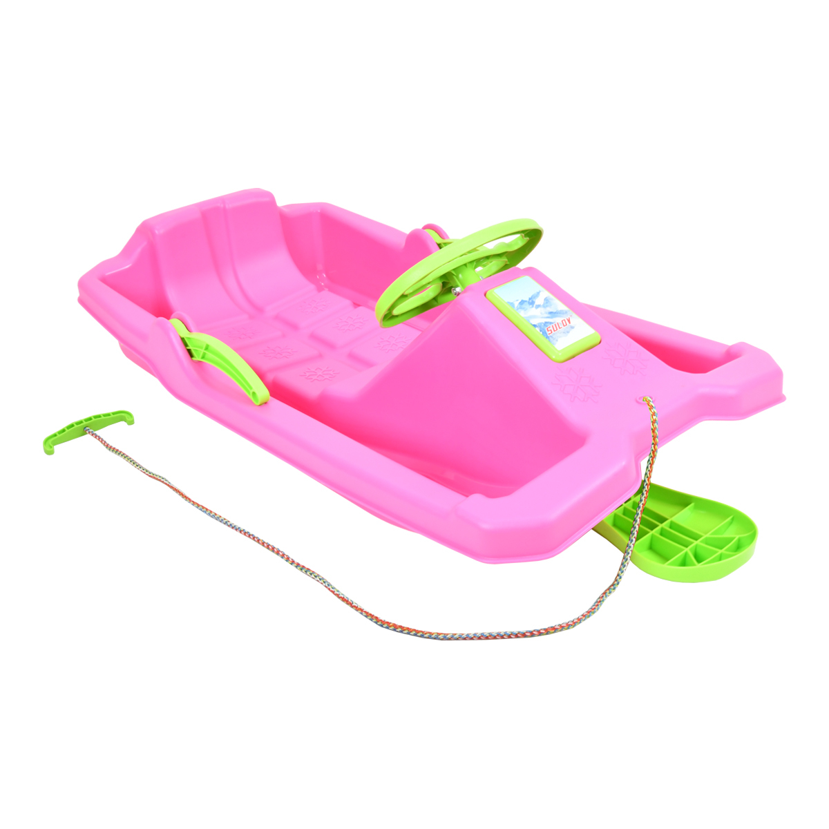 Oblíbený jednomístný bob značky SULOV s volantem a jednou ližinou.ergonomický tvardvě profilované brzdové pákytažné lano s rukojetízvýšené boční strany pro větší bezpečnost při jízděvysoce odolný plastový materiálvyrobeno v EUMaximální nosnost: 50 kgRozměry: 43 x 90 x 27 cm (š x d x v) przeczytaj całość