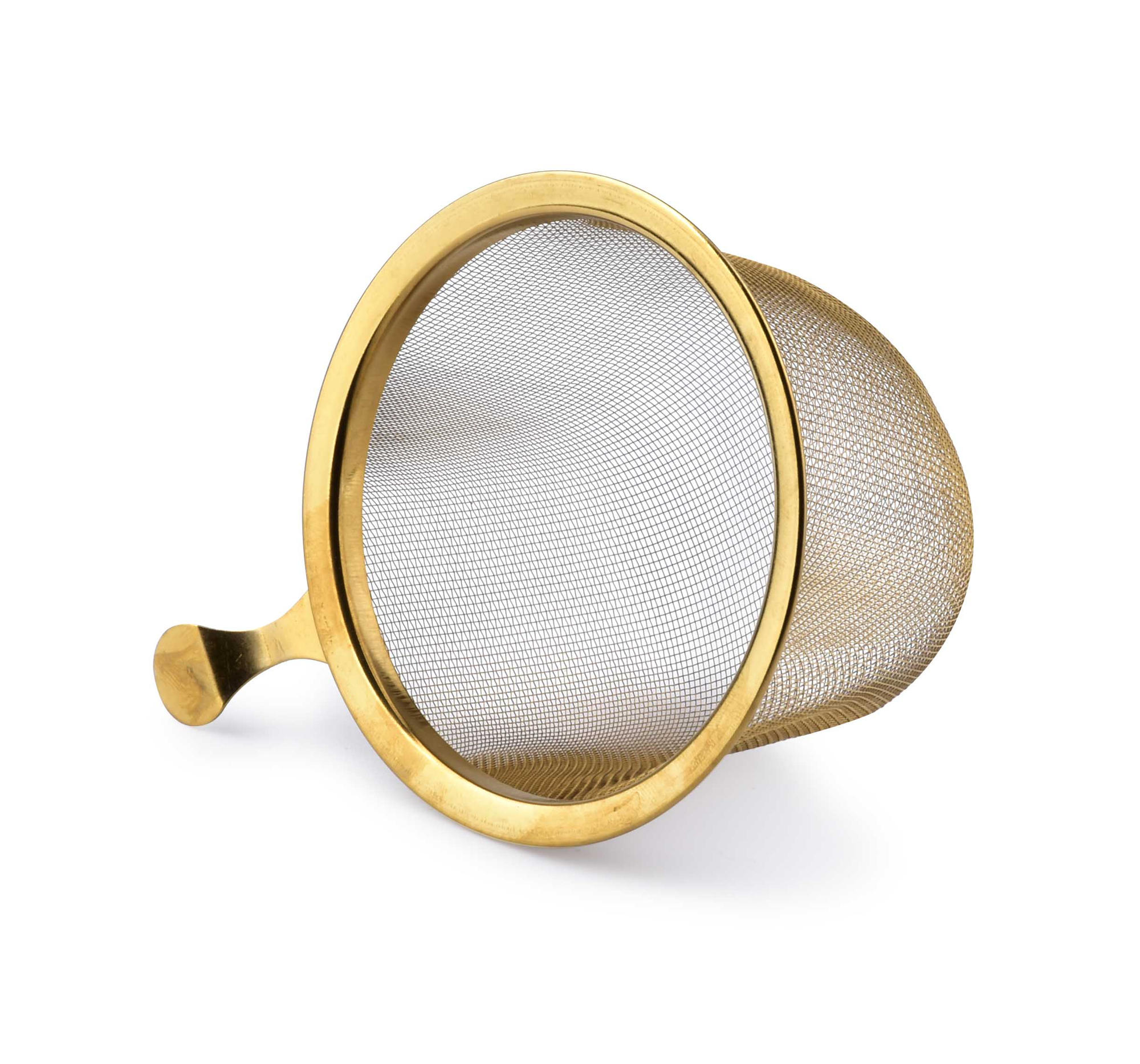 Mały metalowy zaparzacz z serii BASIC STELL marki COOKINI. Jest to zaparzacz domałego kubka lub filiżanki w kolorze złotym. rozmiarśrednica: 7cm średnica z uchwytem: 9.5cm... przeczytaj całość