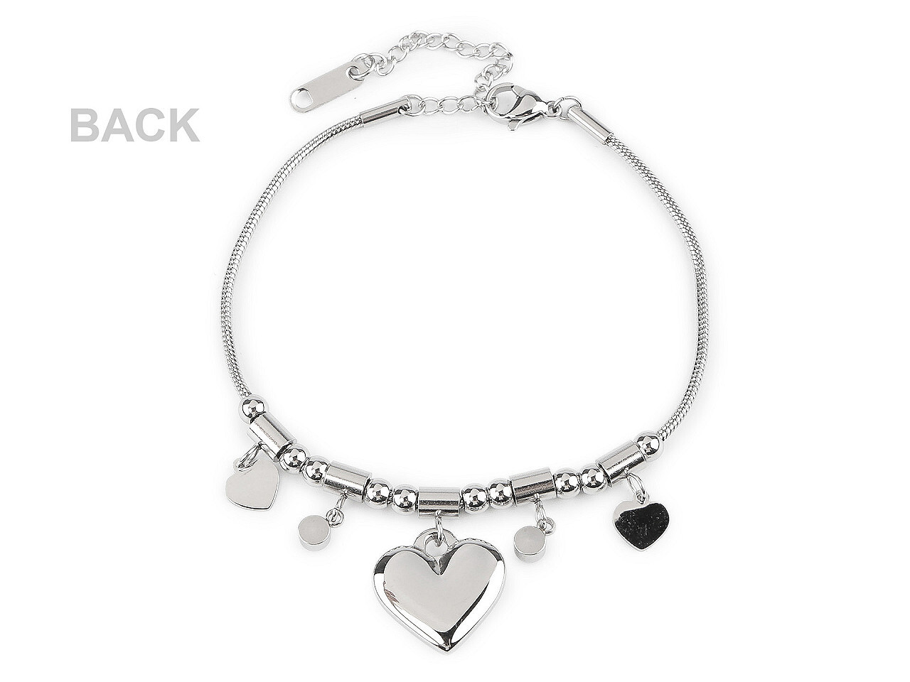 Hadí náramek z nerezové oceli má ve středu výraznou ozdobu z korálků, přívěsků a broušených kamínků. Na zápěstí nejvíc upoutá přívěsek s velkým srdcem. Náramek má provedení ve vysokém lesku. Má kvalitní zpracování, poutavě dozdobí vaše zápěstí. Je perfektní pro nošení jak na každodenní příležitosti, tak i na zvláštní události.