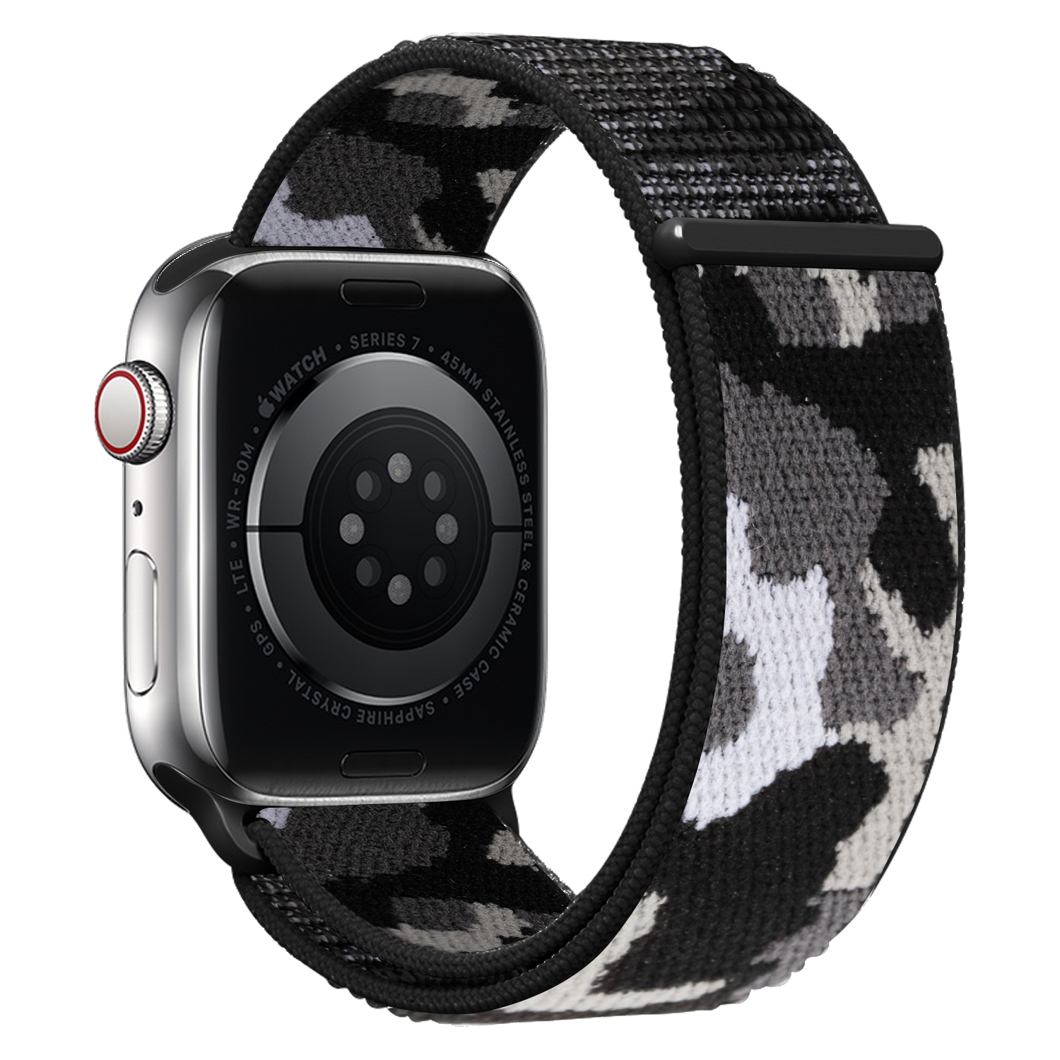 Nylonový řemínek kamufláž pro Apple Watch 42/44/45/46/49mm,Černá kamufláž