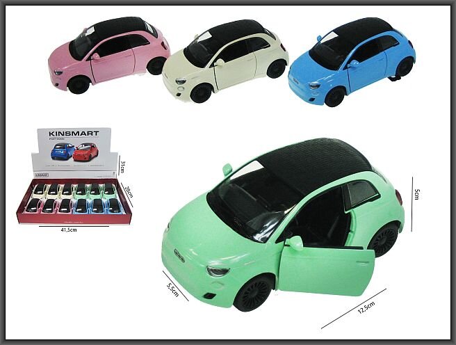Fiat 500E 1:28 z napędem i z otwieranymi drzwiami pastelowe kolory